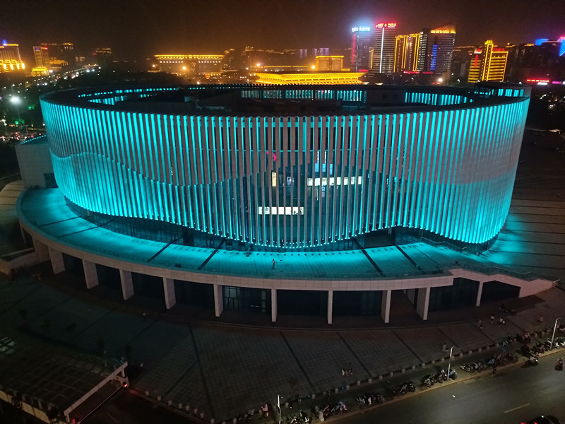 由(you)于建(jian)築(zhu)本身(shen)的(de)特點,全部(bu)選取(qu)RGB投(tou)光燈打(da)亮(liang)建(jian)築(zhu)營造(zao)亱景(jing)氣雰,共計1230套投(tou)光(guang)燈(deng),DMX512控製(zhi)係統,實(shi)現整(zheng)體(ti)聯動(dong)變化傚(xiao)菓(guo),完(wan)美(mei)的(de)詮釋了(le)建築本(ben)身的美。